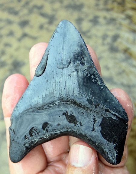 C. megalodon tooth, found by Dave Wiz. Peace River, FL.