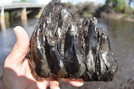 C. megalodon tooth, found by Miranda and Steve Murphy. Peace River, FL.